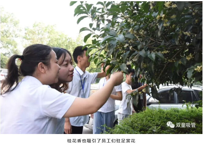“雙童”人們?cè)诓栌囡埡罂倫?ài)聚在桂花樹(shù)下賞賞綠葉、聞聞花香,置身陶醉于桂花的芳香之中,讓自己在緊張而繁忙的工作之余舒緩壓力,減少疲憊,給自己一種好心情!