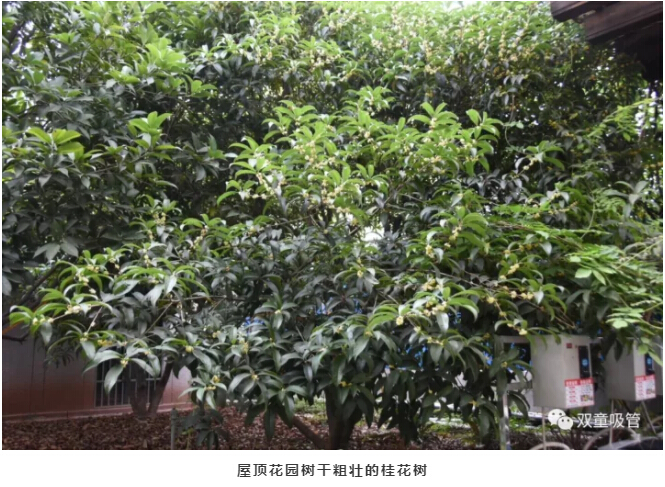 所謂“聞香不忘種桂人”,“雙童”樓仲平當(dāng)初在規(guī)劃廠區(qū)綠化時(shí),不僅在廠區(qū)地面種了數(shù)棵桂花樹(shù)外,還把桂花樹(shù)也種到了屋頂!“雙童”屋頂?shù)拿繅K種植區(qū)都有1米2深的土層,在建廠之初就考慮到了承重與防水的問(wèn)題,所以可以放心栽種哦!