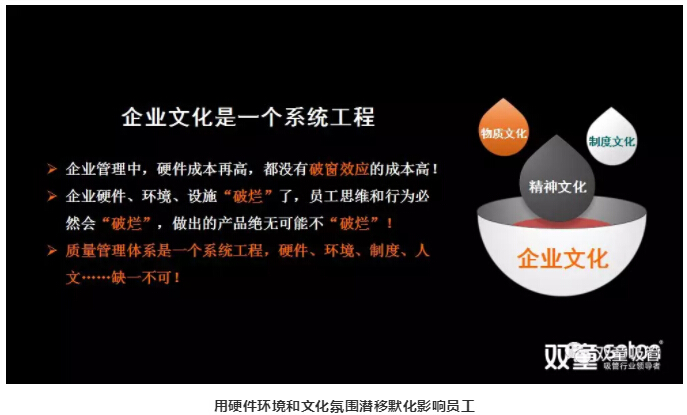 通過對環(huán)境和制度的不斷改善,我們認知到:質(zhì)量的改善僅有硬件和制度是不夠的,更需要不斷提升每一位員工的素養(yǎng),形成高度統(tǒng)一的群體意識 。自此,“雙童”質(zhì)量文化開始逐步完善,通過硬件環(huán)境和文化氛圍潛移默化地影響員工,用精細化管理的方式改變員工的意識和習(xí)慣。