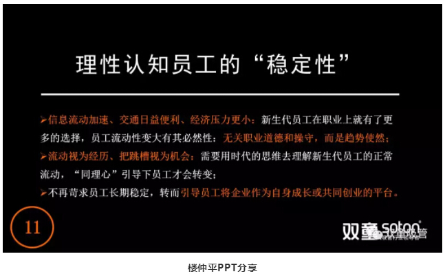 看到這里,很多老板或許認為離職率高因為現(xiàn)在的95后員工浮躁、不穩(wěn)定,可事實真的是這樣嗎?管理者又該如何面對和管理呢?一起來看看樓仲平是怎么說的吧!