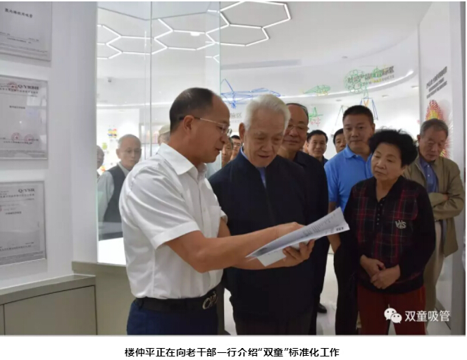接著,樓仲平又向大家介紹:“雙童”在二十五年時(shí)間里完成了多項(xiàng)吸管行業(yè)的國家標(biāo)準(zhǔn)、國際標(biāo)準(zhǔn)。聽完介紹后,老干部一行也對(duì)“雙童”的標(biāo)準(zhǔn)化建設(shè)工作連連贊嘆,也為“雙童”獲得全球吸管產(chǎn)業(yè)的標(biāo)準(zhǔn)制定權(quán)和行業(yè)話語權(quán)感到驕傲!