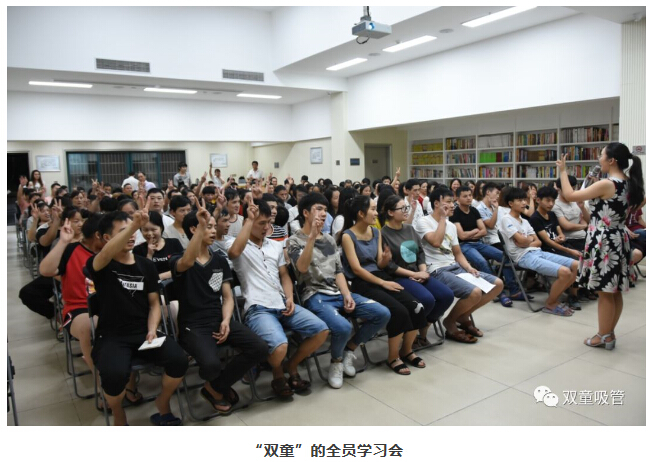 2010年,樓仲平在摸索自媒體運(yùn)營過程當(dāng)中,不斷地培養(yǎng)團(tuán)隊(duì)來運(yùn)營自媒體項(xiàng)目。在此過程中,樓仲平把來自浙江傳媒學(xué)院畢業(yè)的吸管妞周上帶在身邊培養(yǎng),每天一起運(yùn)營自媒體傳播,慢慢灌輸“雙童”企業(yè)文化和自媒體運(yùn)營積累的經(jīng)驗(yàn),并培養(yǎng)“吸管妞”的團(tuán)隊(duì)意識和管理能力,從而開始招兵買馬組建文宣團(tuán)隊(duì)。