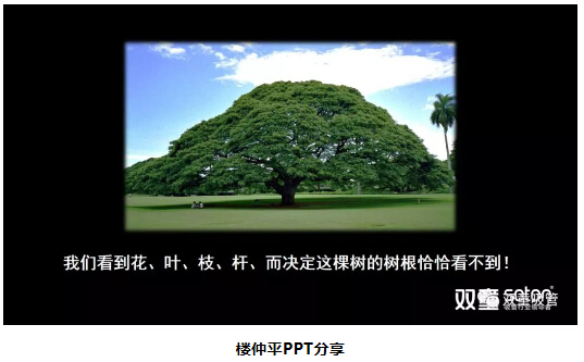 緊接著,樓仲平通過一棵樹的圖片,再次引導(dǎo)大家思考:我們通過圖片能看到樹的樹干、樹枝、樹葉等,但是真正決定這棵樹的樹根,卻并不能直接看到。所以,看不到的東西并不代表它不存在,反而往往是事物的根基和底層邏輯!
