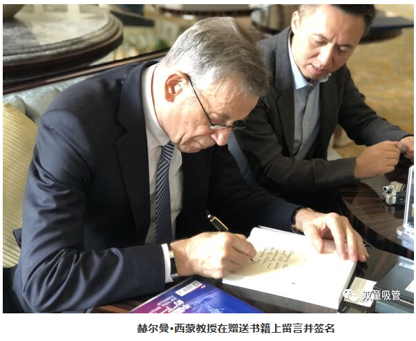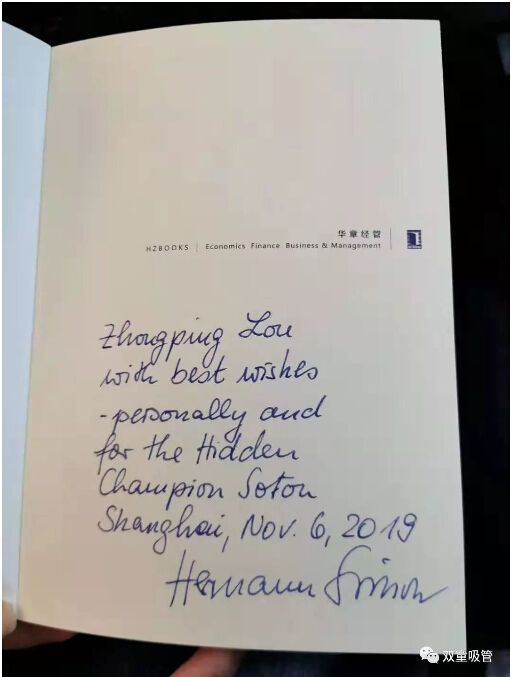 除此之外,西蒙教授還贈(zèng)送了“雙童”樓仲平一本他親筆簽名的《隱形冠軍》書籍作為紀(jì)念!