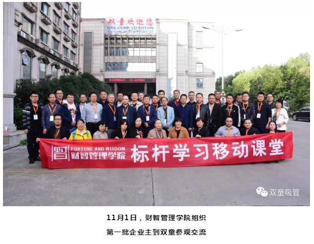 11月19日下午,江西財智管理學(xué)院的近60位企業(yè)主來到“雙童”參觀交流。這已經(jīng)是江西財智管理學(xué)院團(tuán)隊第二次走進(jìn)“雙童”了。原來,樓仲平曾多次在江西財智管理學(xué)院授課,大家對“雙童”及樓仲平的經(jīng)營思維特別感興趣,先后組織了兩批企業(yè)主來到“雙童”學(xué)習(xí)交流。