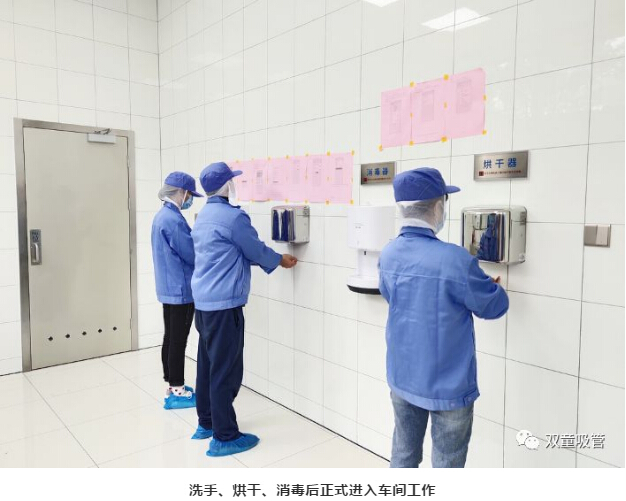 3月2日早上8點,近30位阿蓮共享員工們來到“雙童”,經(jīng)過測量體溫、入職登記、查看健康碼、軌跡卡等一系列防疫流程后,陸續(xù)換上工作服,帶上工作帽,經(jīng)過風淋、洗手、烘干、消毒等一系列衛(wèi)生防護流程后,正式進入“雙童”車間上崗啦!