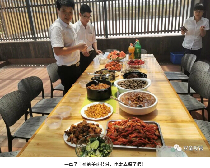 這次聚餐地點與以往不同,選在了“雙童”新廠房的“空中學(xué)習(xí)吧”。這里專門配置了廚房、冰箱、咖啡機、烤箱、紅酒.....容納五六十人完全沒問題,成為了“雙童”人聚餐、學(xué)習(xí)交流的首選之地!