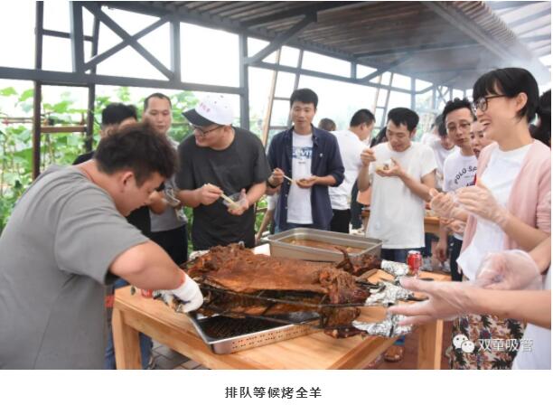 接下來,就是烤全羊的“瓜分”現(xiàn)場(chǎng)!烤全羊剛下烤架,周邊就擠滿了排隊(duì)等候的吃貨們,果真是誰也無法抵擋烤全羊的魅力??!