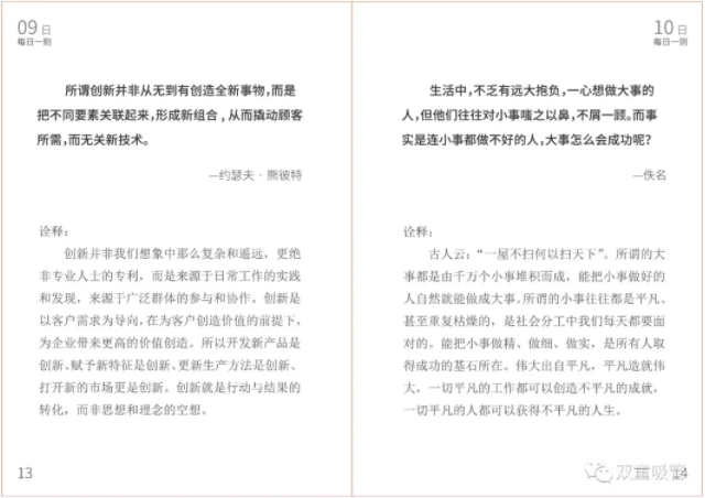 好啦!相信大家看完2021版《每日一則》的序言,一定還覺(jué)得意猶未盡,吸管妞接下來(lái)會(huì)不定期和粉絲們分享2021版《每日一則》內(nèi)容!大家不要忘了到留言處發(fā)表對(duì)于《每日一則》的感想。留言的粉絲添加吸管妞的微信即可9.9包郵購(gòu)入一本2021版《每日一則》!大家趕快行動(dòng)吧!
