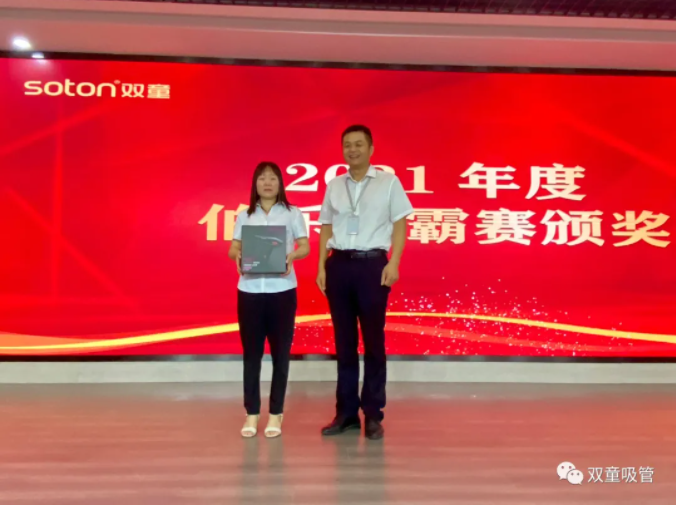 在2021年第二季度員工表彰大會(huì)上,“雙童”總經(jīng)理李二橋?yàn)樵谝痪€辛勤奮斗的“雙童人”頒發(fā)了榮譽(yù)證書和豐厚的獎(jiǎng)金。