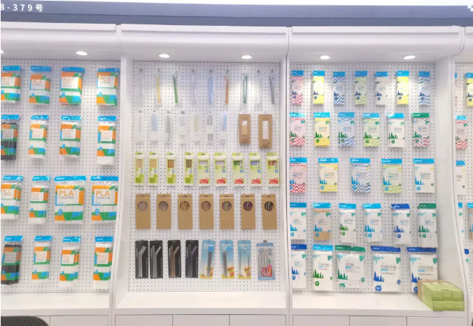 “雙童”展位上琳瑯滿目的吸管展品,大有濃縮版吸管博物館的架勢!從傳統(tǒng)吸管到創(chuàng)意吸管,從紙吸管到可降解吸管,各式各樣的產(chǎn)品已準備就緒,就等著參展客戶們來“翻牌子”啦!