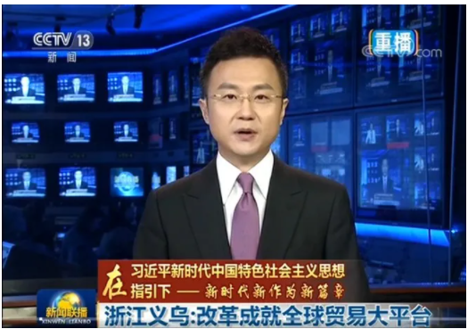 2019年12月7日,中央電視臺(tái)《新聞聯(lián)播》頭條以《【在習(xí)近平新時(shí)代中國特色社會(huì)主義思想指引下——新時(shí)代 新作為 新篇章】浙江義烏:改革成就全球貿(mào)易大平臺(tái)》為標(biāo)題,聚焦義烏改革發(fā)展。
