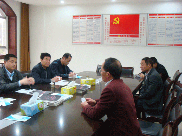上圖:董事長樓仲平親切接見考察組一行并進行對話交流