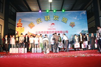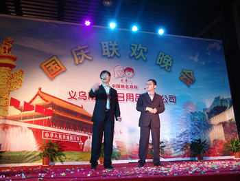 為迎接祖國62周年華誕,9月30日晚,雙童公司廠區(qū)里燈火輝煌、人頭攢動,歌聲嘹亮。公司在廠區(qū)隆重舉辦“歡騰國慶、雙童之夜”文藝聯(lián)歡晚會。公司董事長樓仲平、廠長、副總經(jīng)理等多位領(lǐng)導(dǎo)同雙童公司500余名職工及家屬一起觀看演出,共慶國慶。