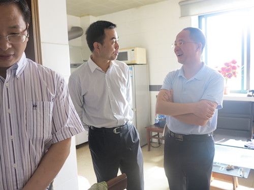 圖為領(lǐng)導(dǎo)考察員工宿舍條件