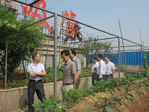 圖為領(lǐng)導(dǎo)參觀屋頂菜園