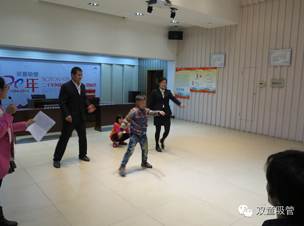 首先,這期生日會的第一個不同之處,就是參與生日會的人員注入了新鮮的血液!我們請來了第三代雙童人——隨父母居住在雙童的孩子們,為壽星們跳了一段熱情洋溢的舞蹈——《小蘋果》!看著孩子們駕輕就熟的表演,吸管妞也鬼馬地讓他們的“生產(chǎn)商”廠長李秀前和廠長夫人上臺,讓孩子們教兩位如何跳“小蘋果”!一番折騰下來,不僅讓在座的各位壽星笑得前仰后合,更讓跳的手腳不知道怎么放的廠長李秀前感嘆道:長江后浪推前浪,前浪死在沙灘上?。?/span>