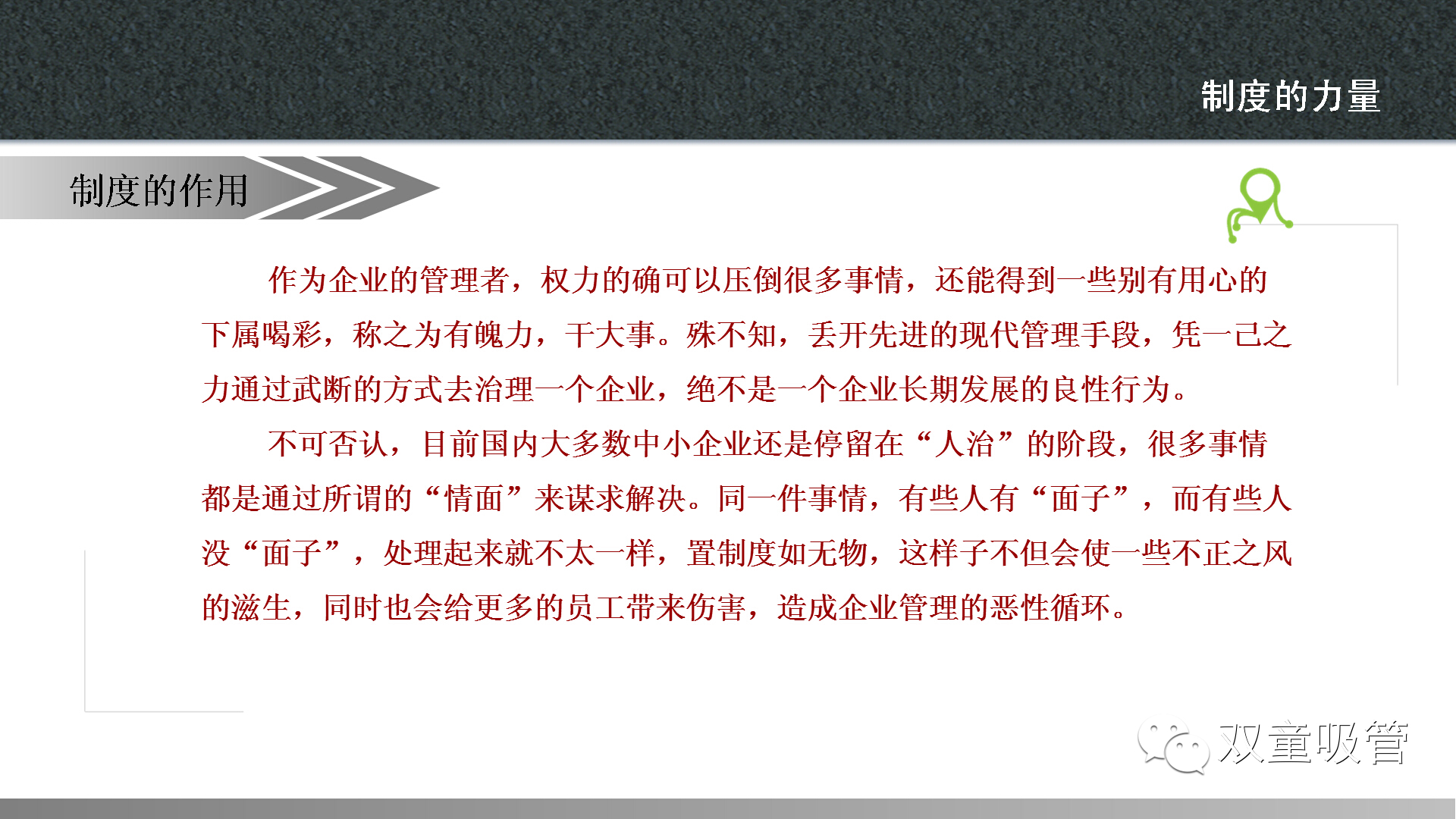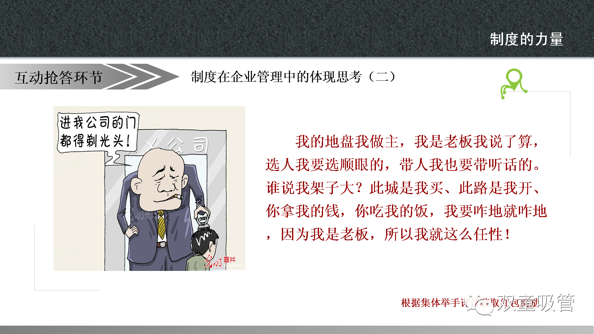 當(dāng)然啦,這樣的案例,當(dāng)家人準備了許多,讓大家在快樂中學(xué)習(xí)到了制度的魅力。以前吸管妞總是有一種誤解,覺得制度就是上級用來管理下級的一種方式。通過昨天的課程終于讓妞明白了,原來制度不僅僅是有利于上級管理,更有利于雙方的權(quán)利得到保障,讓公司的流程化管理更加準確高效!下面,吸管妞就把干貨放上來,大家可要好好看哦!
