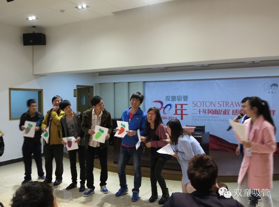 3月28日晚, 雙童吸管春節(jié)后的第一次員工生日(二、三月份)派對在九樓天臺上快樂舉行!燒烤配啤酒、點心配紅酒,瓜果配飲料,首先這吃喝上得讓壽星們滿足嘍才能有力氣參與我們精心準(zhǔn)備的各類小游戲?qū)Σ唬?/p>