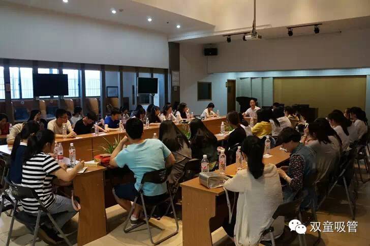 參觀完畢,大家就坐下來好好和當(dāng)家人進(jìn)行溝通互動(dòng)吧!童鞋們紛紛把剛才參觀時(shí)所產(chǎn)生的疑慮和困惑一一向當(dāng)家人進(jìn)行提問?!叭绻麃砟銈児緦?shí)習(xí),你們看重員工的什么素質(zhì)呢?”“雙童是如何保持源源不斷的創(chuàng)新能力呢?”“雙童的商標(biāo)背后有沒有什么故事?”各種千奇百怪的問題都被童鞋們提了出來,而當(dāng)家人則是把每個(gè)問題都解釋得清晰明了,童鞋們也是拿著筆記把各種數(shù)據(jù)和關(guān)鍵詞都記了下來,據(jù)說回去還要交報(bào)告和作業(yè)呢!這么認(rèn)真,也是拼啦!
