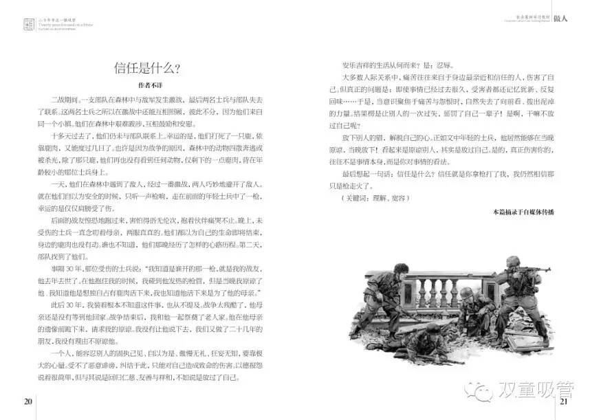 《社會(huì)案例學(xué)習(xí)教材》里包括了做人、做事、經(jīng)營文化、管理文化等各個(gè)主題的經(jīng)典好文,實(shí)際上也是按照雙童的企業(yè)文化要素進(jìn)行分類收錄,其中一大部分都是從吸管妞平時(shí)發(fā)給大家的微信文章里收集到的哦!