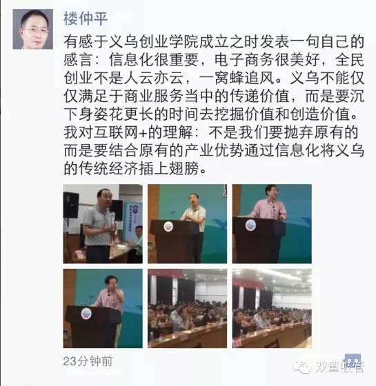 當(dāng)家人樓總也有感于義烏創(chuàng)業(yè)學(xué)院成立之時(shí)在朋友圈發(fā)表了自己的感言: