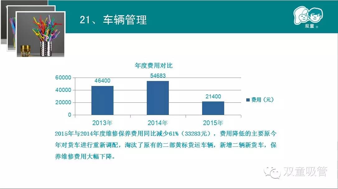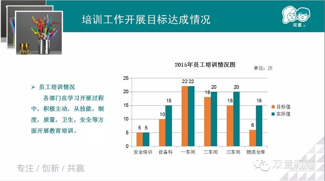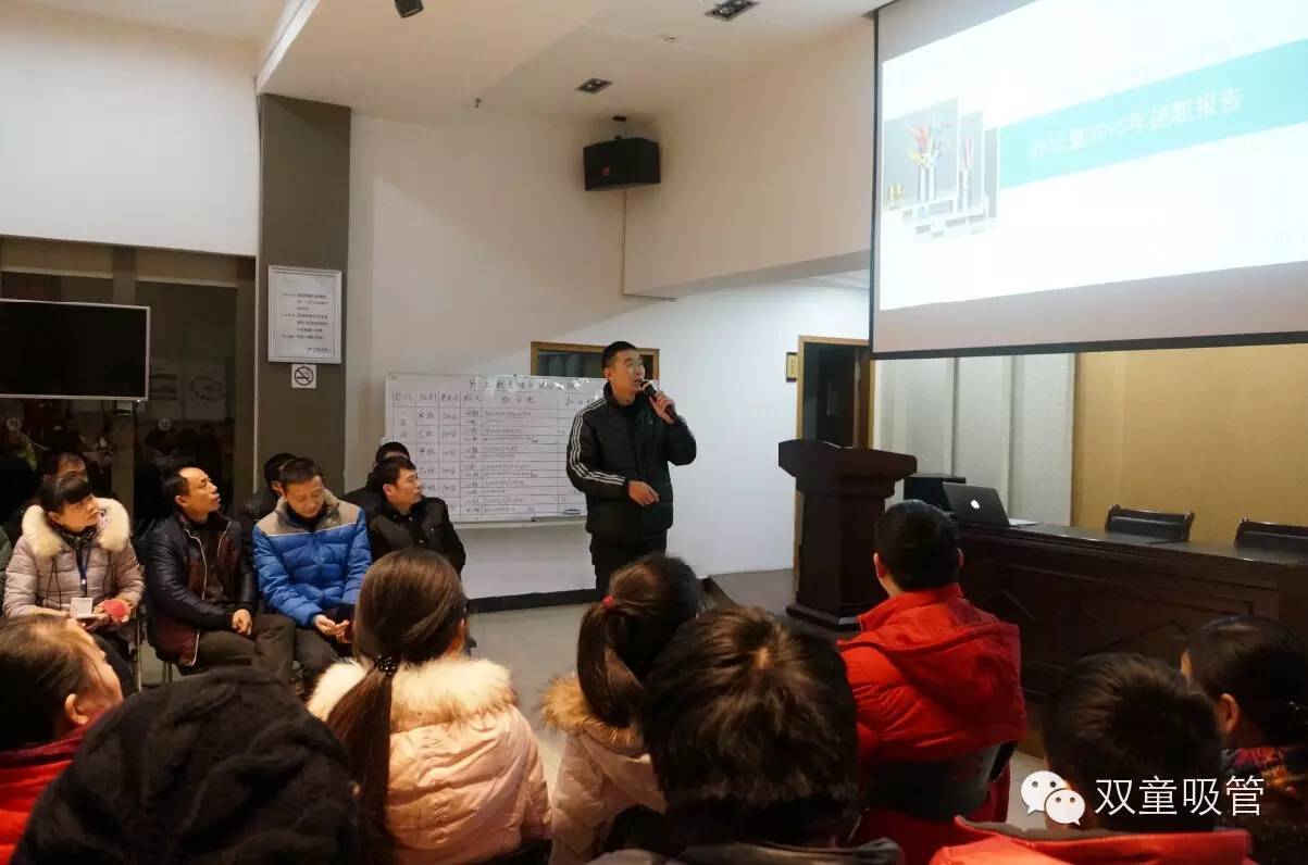 而在昨天的“雙童吸管2015年述職報告”會議上,包括總經(jīng)理李二橋在內(nèi)的4位述職人員,就用翔實的數(shù)據(jù)、充足的事例,向在座的各位同事闡述了各部門一年來的工作成果與缺點不足,并對新一年的工作目標做出了合理規(guī)劃。