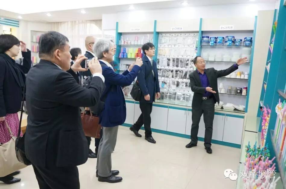 接著,一行人在樓總的指引下,來到了產(chǎn)品樣品房。當(dāng)家人樓總向大家介紹雙童的幾個熱銷創(chuàng)新吸管,而日本的團隊對價值高達3美元的愛心吸管十分感興趣,當(dāng)下就詢問能否賣給他們幾套留作紀念。