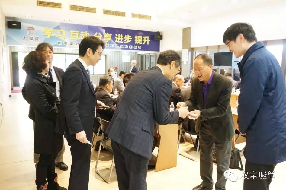 而講課前,日本團隊的一個小細節(jié)深深地震撼了吸管妞。早就對日本人的紀律性有所耳聞,但是百聞?wù)娴牟蝗缫灰?。課前,20多位日本客人自動排成長隊,主動向當(dāng)家人樓總介紹自己并遞交名片。在這期間,后面的人都保持著安靜,聽第一個人認真介紹自己,不催促,不打斷,不靠近。