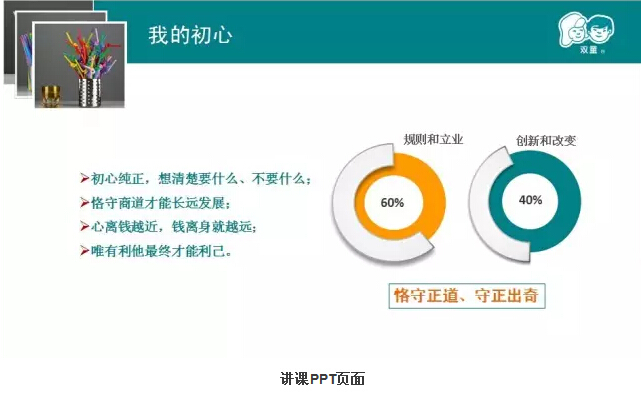 初心就是企業(yè)的基因。做企業(yè)根一定要正!60%一定是規(guī)則和利益,根不正,再怎么創(chuàng)新,也不會(huì)長(zhǎng)久。