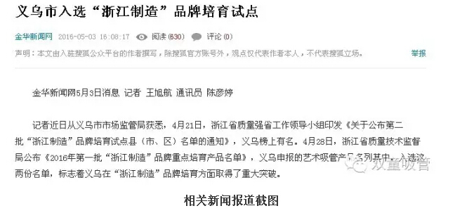 2014年底,浙江在全國率先以標準和認證為手段打造首個區(qū)域性公共品牌——“浙江制造”品牌。“浙江制造”標準比國家及行業(yè)標準要求要高,基本達到國際先進、國內(nèi)一流水平。4月28日,浙江省質(zhì)量技術(shù)監(jiān)督局公布《2016年第一批“浙江制造”品牌重點培育產(chǎn)品名單》,我們“雙童”代表義烏申報的吸管產(chǎn)品名列其中。入選這份名單,標志著義烏在“浙江制造”品牌培育方面取得了重大突破。