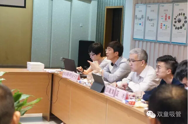 會議中,“雙童”董事長樓仲平向各位領(lǐng)導(dǎo)闡述了“雙童”一直以來對標準化工作的重視,并是目前浙江省唯一由單一企業(yè)承擔行業(yè)標準、國家標準和國際標準起草編制任務(wù)的中小企業(yè)??偨?jīng)理李二橋則詳細地向各位領(lǐng)導(dǎo)介紹了聚丙烯吸管的標準初案、編制說明(包括標準對比、分析、驗證、說明材料)及先進性介紹。