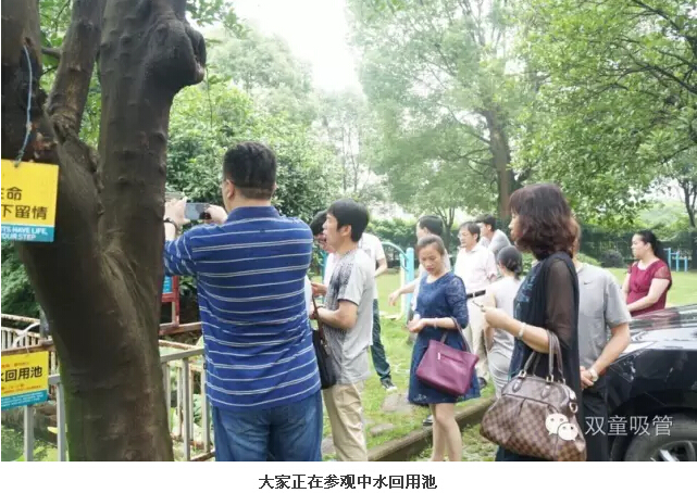 來者皆是客,當(dāng)家人樓總自然也是全情奉獻(xiàn),熱情接待。一行人先是來到了我們的中水回收池,樓總給眾人講解了我們雙童的廢水循環(huán)利用的系統(tǒng)和原理,之后又參觀了雨水收集處、垃圾分類站等地。眾人對(duì)雙童這種生態(tài)循環(huán)、為社會(huì)節(jié)約資源的做法點(diǎn)了一個(gè)大大的贊。