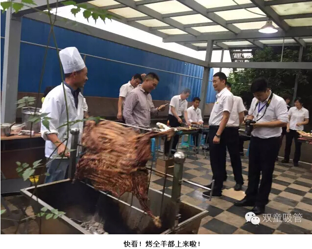 來到屋頂花園,來自我們生產(chǎn)車間的廠長和三個(gè)車間主任擔(dān)當(dāng)起了為客戶們服務(wù)燒烤的工作,我們的生產(chǎn)和銷售其實(shí)是一條線上的呢!呀!快看!烤全羊都上來啦!