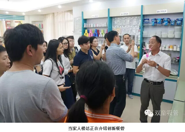 一到“雙童”,大家就參觀起了行政辦公室和吸管樣品房,當(dāng)家人樓總介紹了一系列他們從沒見過的創(chuàng)新吸管,讓他們驚訝的是,原來一根小小的吸管也可以有這么多的功能可以開發(fā)。