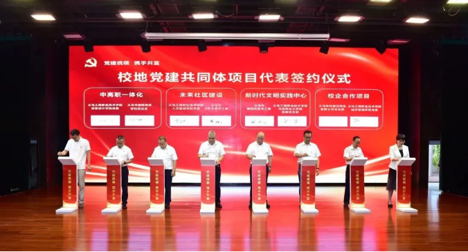 金華市委常委、義烏市委書記王健,義烏市委常委、組織部長蔣濤,校黨委書記李昌祖、院長馬廣及全體黨政領(lǐng)導(dǎo)班子成員及相關(guān)單位負(fù)責(zé)人受邀出席成立儀式,雙童董事長樓仲平和黨支部書記張國俊作為共建項(xiàng)目代表也受邀出席成立儀式!