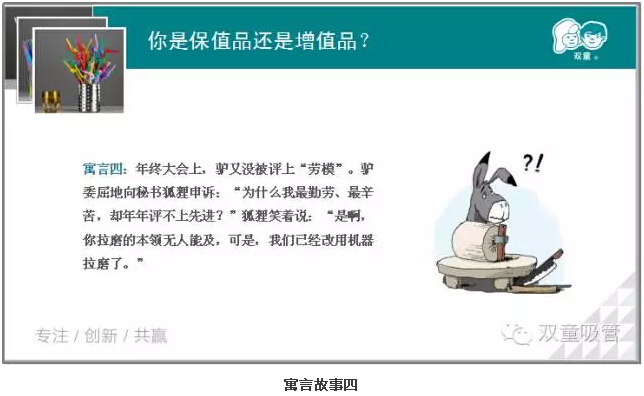 不知不覺,已經(jīng)分享到了最后一個(gè)故事。而最后一個(gè)故事更是引起了大家的深思。為什么如此勤勞的驢卻沒有評(píng)上“勞模”呢?你是保值品還是增值品?見此,童鞋們的學(xué)習(xí)熱情更加高漲啦!