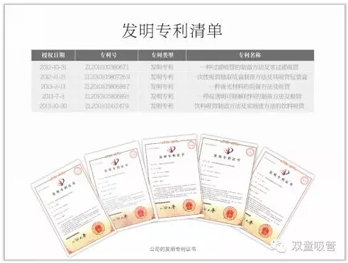 “雙童”擁有的專利證書多達(dá)一百多項(xiàng),占全球吸管行業(yè)的三分之二!