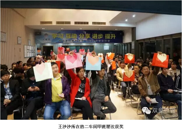 還有獎品?其實我們每期學(xué)習(xí)會都會設(shè)立評分標(biāo)準(zhǔn),根據(jù)各車間員工的表現(xiàn)進行加減分,每月設(shè)立優(yōu)秀學(xué)習(xí)班組,并有精美禮物獎勵。而王沙沙所在的二車間甲班更是連續(xù)四次成為優(yōu)秀學(xué)習(xí)班組,哎喲!獎品都快拿不下了吧!