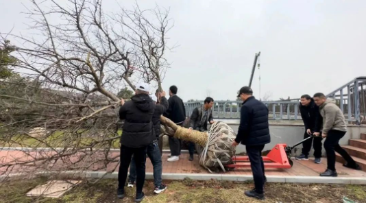 其實啊,主要是因為購買的果樹都是重量級“嘉賓”,所以“雙童”都是通過大吊機將這些果樹運送上空中生態(tài)園的!我們的當家人樓總更是親自從旁指揮,護送大樹成功上樓!