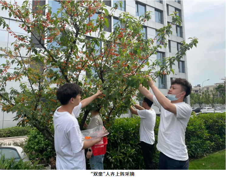 在“雙童”,水果都是員工共享,等到櫻桃成熟了,甜蜜的果實(shí)就要大家一起分享。挑選一個晴朗的日子,細(xì)心地把果實(shí)采摘下來,不僅是品嘗美味,也增進(jìn)了同事間的情誼。