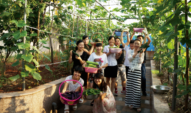 “雙童”一期廠區(qū)的屋頂菜園迎來(lái)大豐收