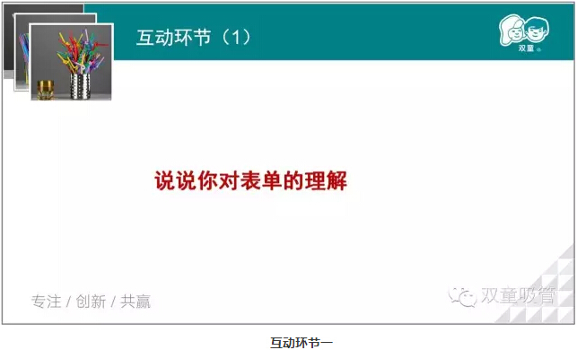 學(xué)習(xí)會(huì)當(dāng)然少不了互動(dòng)啦!這不,一開場(chǎng)互動(dòng)就開始啦!“說(shuō)說(shuō)你對(duì)表單的理解?”話題剛落,童鞋們就爭(zhēng)先恐后地回答問(wèn)題啦!表單是結(jié)算的依據(jù)、表單可以記錄信息...... 大家的答案都層出不窮,不過(guò)很有道理呢!