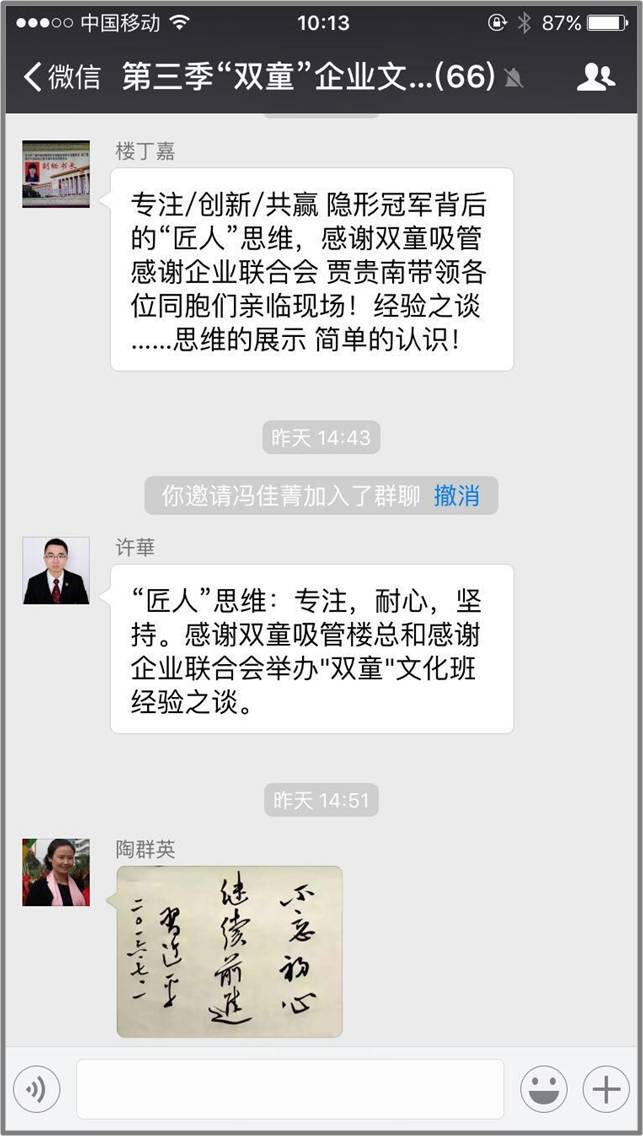 賈會長回顧了去年在”雙童“舉辦的兩期文化班取得的效果,也呼吁在座的企業(yè)主學(xué)習(xí)“雙童”的工匠精神。一席話下來,贏得了在座聽眾的熱烈掌聲!