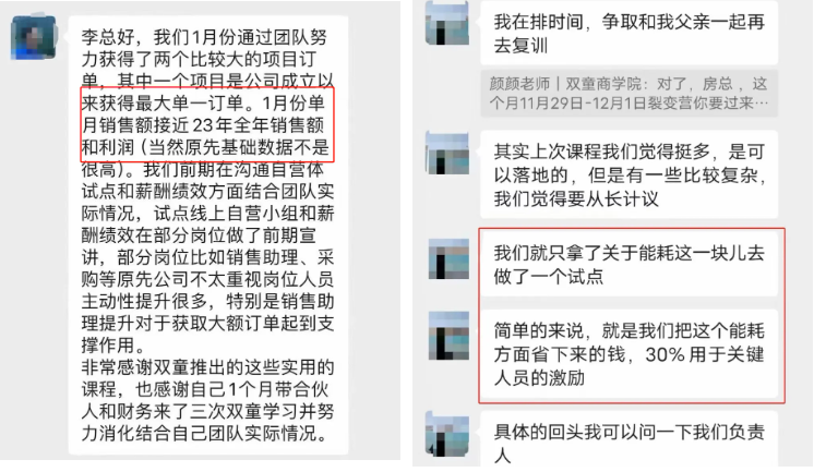 為了能夠助力更多中小企業(yè)也能運(yùn)用這套機(jī)制實(shí)現(xiàn)快速增長(zhǎng),雙童商學(xué)院早在2022年,雙童商學(xué)院就針對(duì)該機(jī)制打磨成《自主制創(chuàng)業(yè)裂變營(yíng)》課程,并不斷地升級(jí)迭代,該課程已經(jīng)是一套非常成熟的、可復(fù)制、可實(shí)踐的課程,完全契合中小微創(chuàng)業(yè)者的需求,報(bào)名人數(shù)也從原來(lái)的幾十人變成現(xiàn)在期期爆滿的“百人團(tuán)”!