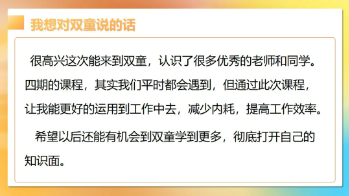 我在學(xué)習(xí)完之后,會跟銷售伙伴們做轉(zhuǎn)訓(xùn),同時我提升了自己的自驅(qū)力,更愿意挑戰(zhàn)自己去做一些難而正確的事情,比如今年我就針對銷售伙伴做了專門的課程學(xué)習(xí)安排。