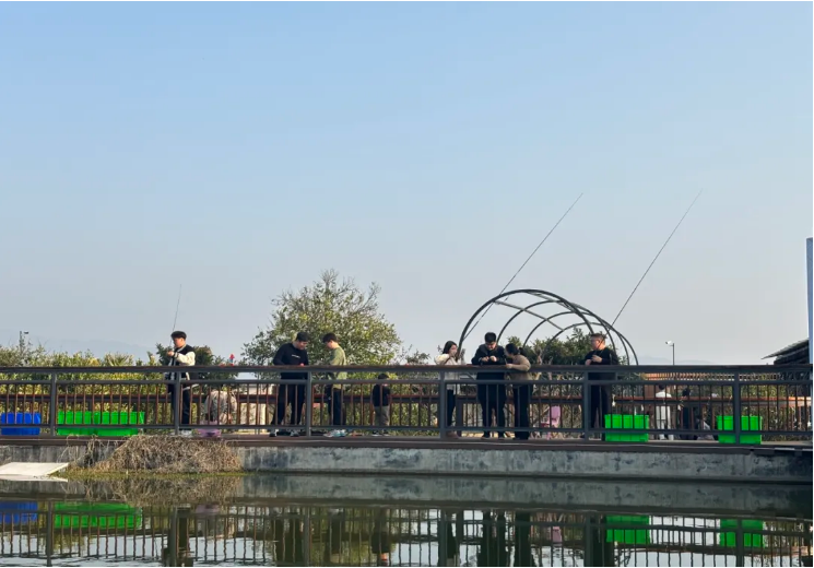 員工們?cè)谖蓓敾▓@釣魚,好愜意呀~