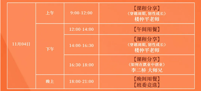 一年期的課程交付中,樓老師將花費24天時間深度陪伴學員成長,圍繞《開門·創(chuàng)業(yè)者成長》、《國際視野與標桿學習》、《產(chǎn)品創(chuàng)新與認知迭代》、《戰(zhàn)略管理與錯位競爭》、《企業(yè)進化與組織保障》、《領(lǐng)導力與企業(yè)家精神》等6大主題內(nèi)容和同學們做深度地閉門分享,并根據(jù)不同課程主題,每期都會邀請飛行嘉賓參與課程交付!