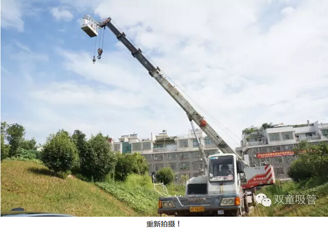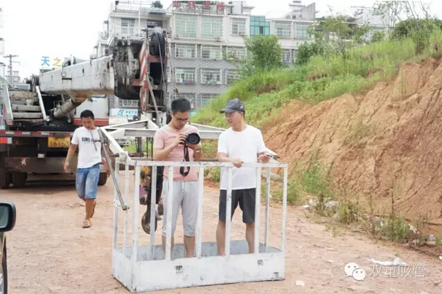 周一的清晨,當(dāng)家人樓總早早地就來到了公司,而在公司門口,還停著一輛大吊機(jī)!用吸管君的話說,這是要搞事情啊!果然,不一會(huì)兒,幾個(gè)拿著專業(yè)攝影機(jī)的攝影師也來到了公司,大家伙一起來到了“雙童”的斜對(duì)面,當(dāng)家人說,我們要隔著北苑路這條大馬路,借助近50米高的大吊機(jī),拍攝“雙童”廠房全景!