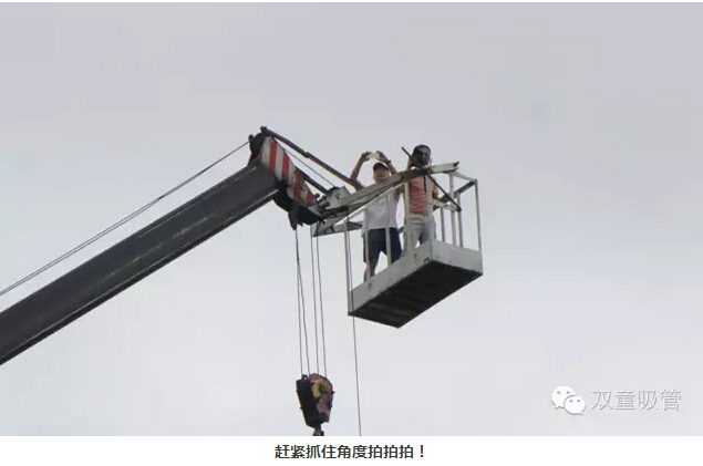 相對(duì)于前兩次的借助腳手架拍攝,這次可算是動(dòng)用了“大家伙”拍攝啦!看這大吊機(jī),據(jù)吊機(jī)師傅介紹,最高可以到達(dá)50米呢!而我們的當(dāng)家人樓總和攝影師會(huì)被這臺(tái)大吊機(jī)送往高空,拍攝企業(yè)全景哦!